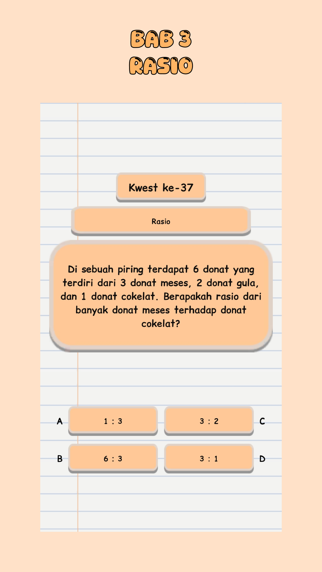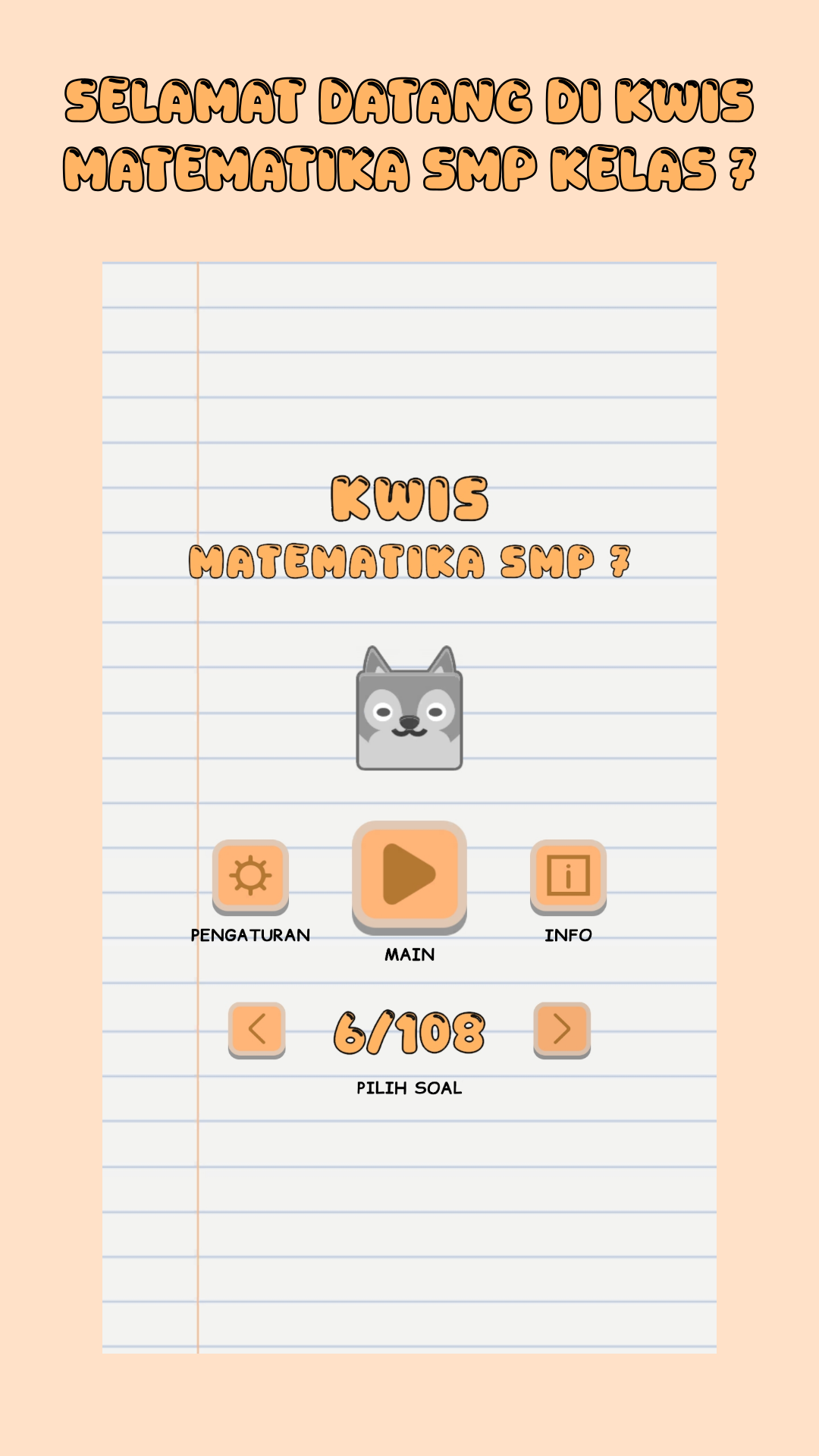 š KWIS: Kuis Matematika Kelas 7 ā Soal Matematika Interaktif Ayo bermain sambil mengerjakan soal matematika Kelas 7 yang seru! Di KWIS: Kuis Matematika Kelas 7, kamu bisa menjawab berbagai soal matematika Kelas 7 yang dirancang untuk membantu memahami konsep matematika dengan cara yang menyenangkan. Game belajar ini berisi banyak soal matematika interaktif untuk melatih kemampuan berhitung, logika, dan pemecahan masalah. Semakin banyak soal matematika Kelas 7 yang kamu selesaikan, semakin terlatih kemampuan matematikamu. Cocok untuk kamu yang ingin latihan matematika Kelas 7 melalui kuis yang seru dan menantang. šÆ Materi Matematika Kelas 7 Di dalam game ini kamu akan menemukan berbagai soal matematika Kelas 7, seperti: 1ļøā£ Bilangan Bulat 2ļøā£ Bilangan Rasional 3ļøā£ Rasio 4ļøā£ Bentuk Aljabar 5ļøā£ Kesebangunan 6ļøā£ Data dan Diagram Semua materi disajikan dalam bentuk kuis matematika interaktif sehingga belajar terasa seperti bermain. š® Fitur Game š§® Soal Matematika Interaktif Latihan berbagai konsep matematika sesuai materi Kelas 7. š Belajar Sambil Bermain Game edukasi yang membuat belajar matematika terasa menyenangkan. š Level Bertahap Tantangan meningkat seiring kemajuan pemain. š Suara & Animasi Menarik Memberi pengalaman belajar yang lebih seru. š“ Bisa Dimainkan Offline Mainkan kapan saja tanpa internet. š° Opsi Tanpa Iklan Nikmati permainan tanpa iklan dengan pembelian satu kali. šÆ Ayo selesaikan semua soal matematika Kelas 7 dan tingkatkan kemampuanmu!